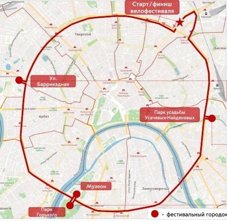 Маршрут Весеннего велофестиваля 21 мая 2023 года. Москва